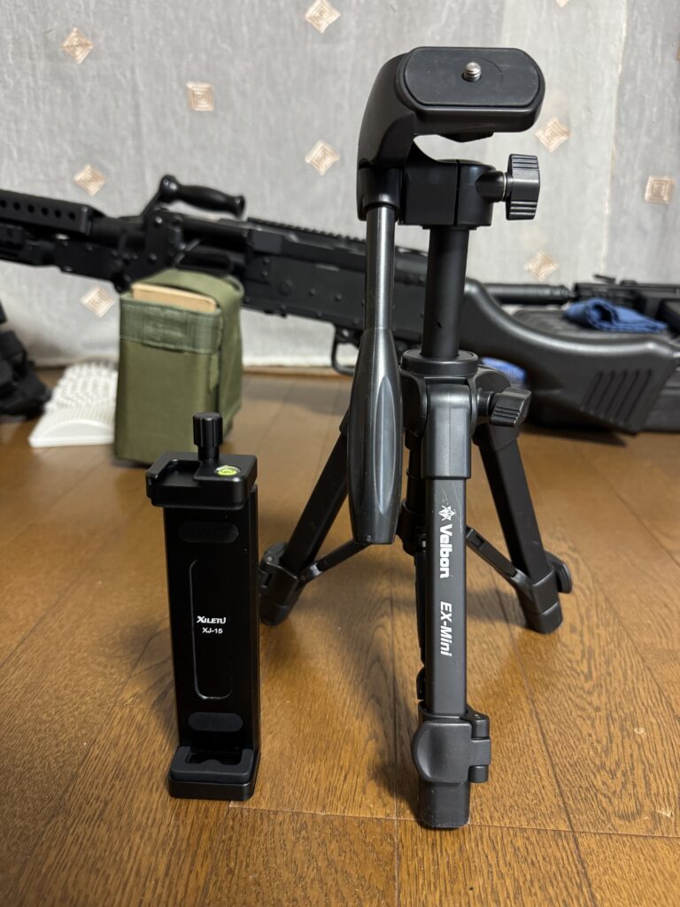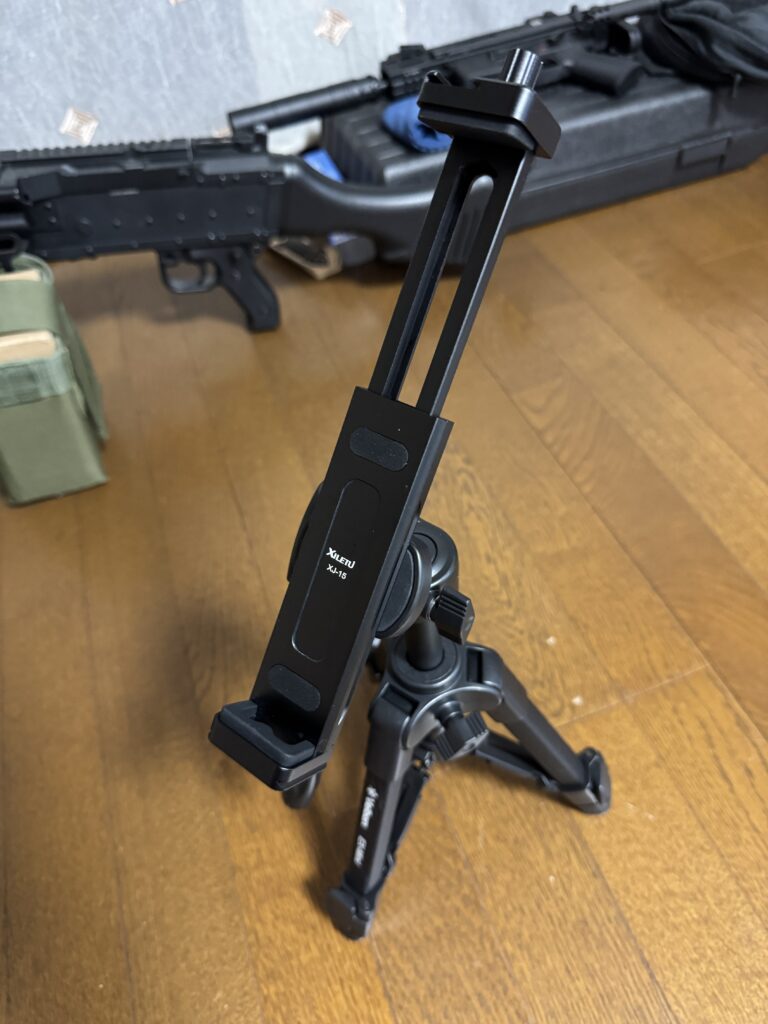 三脚にタブレットホルダーをつけた状態。この時点でも結構しっかりと固定されてますし、三脚もブレる気配がありません。さすがはベルボン製。
