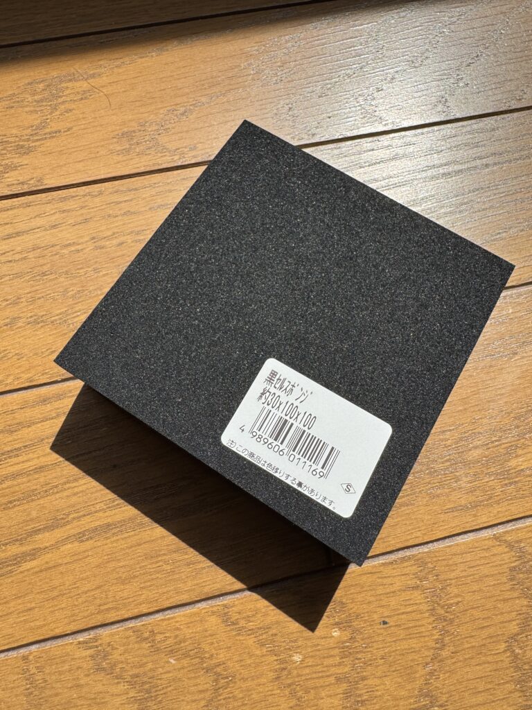ホームセンターで高反発のウレタンパネル(100mm x 100mm x 30mm)を買ってきました。30mm厚で100円ほど。なぜ30mmなのかというと、フックのような形にして液タブ上部に引っ掛けて落ちないようにするためです。