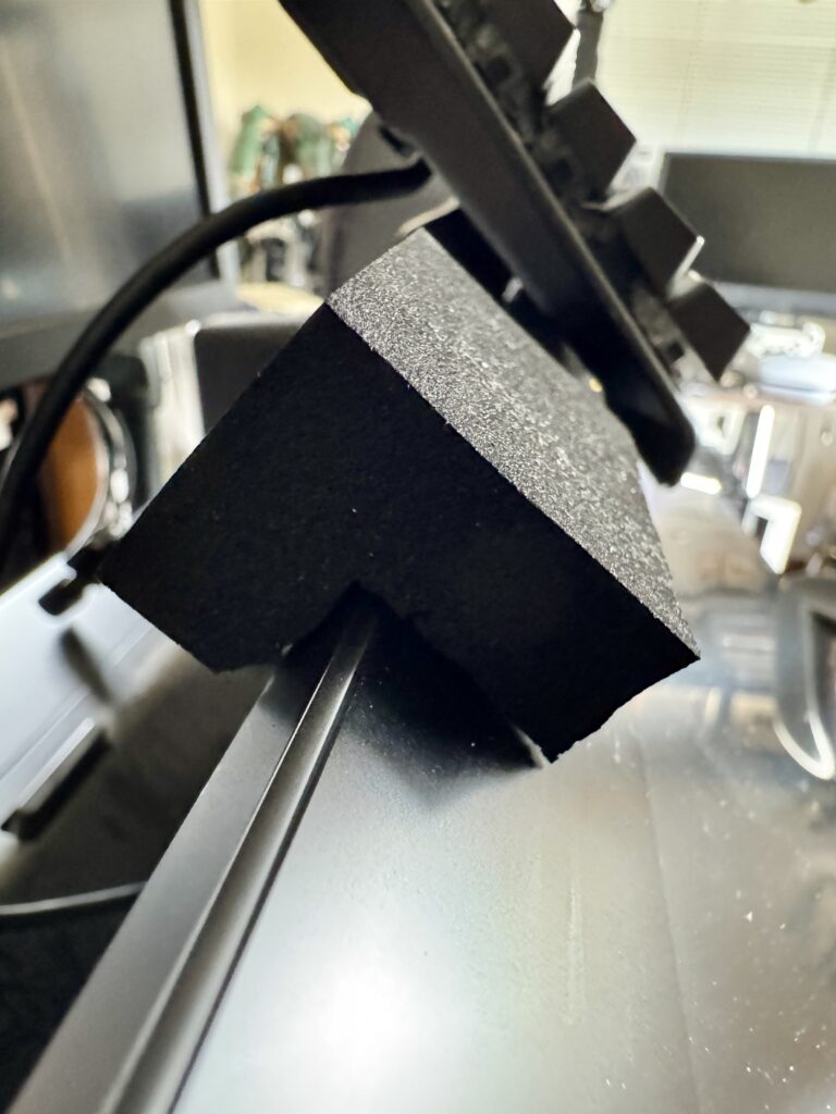 ちょっとした問題が発生しました。タブレットホルダーが液タブに接触せずに浮いた状態に。それでも高反発のウレタンのおかげで押しても一切沈み込まずに固定できていたので一安心。画面に傷がつかないと考えればこれはこれで正解かもしれません。